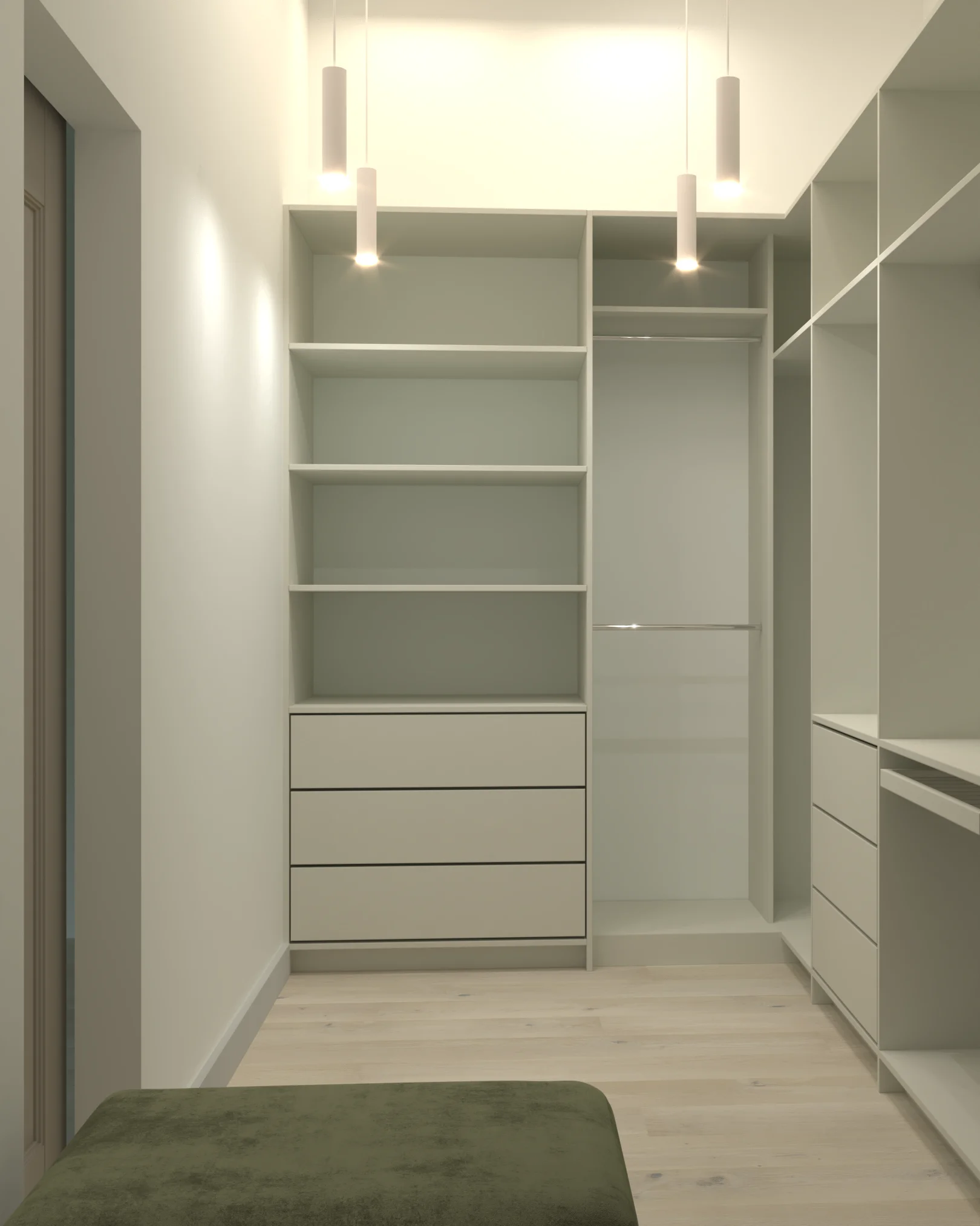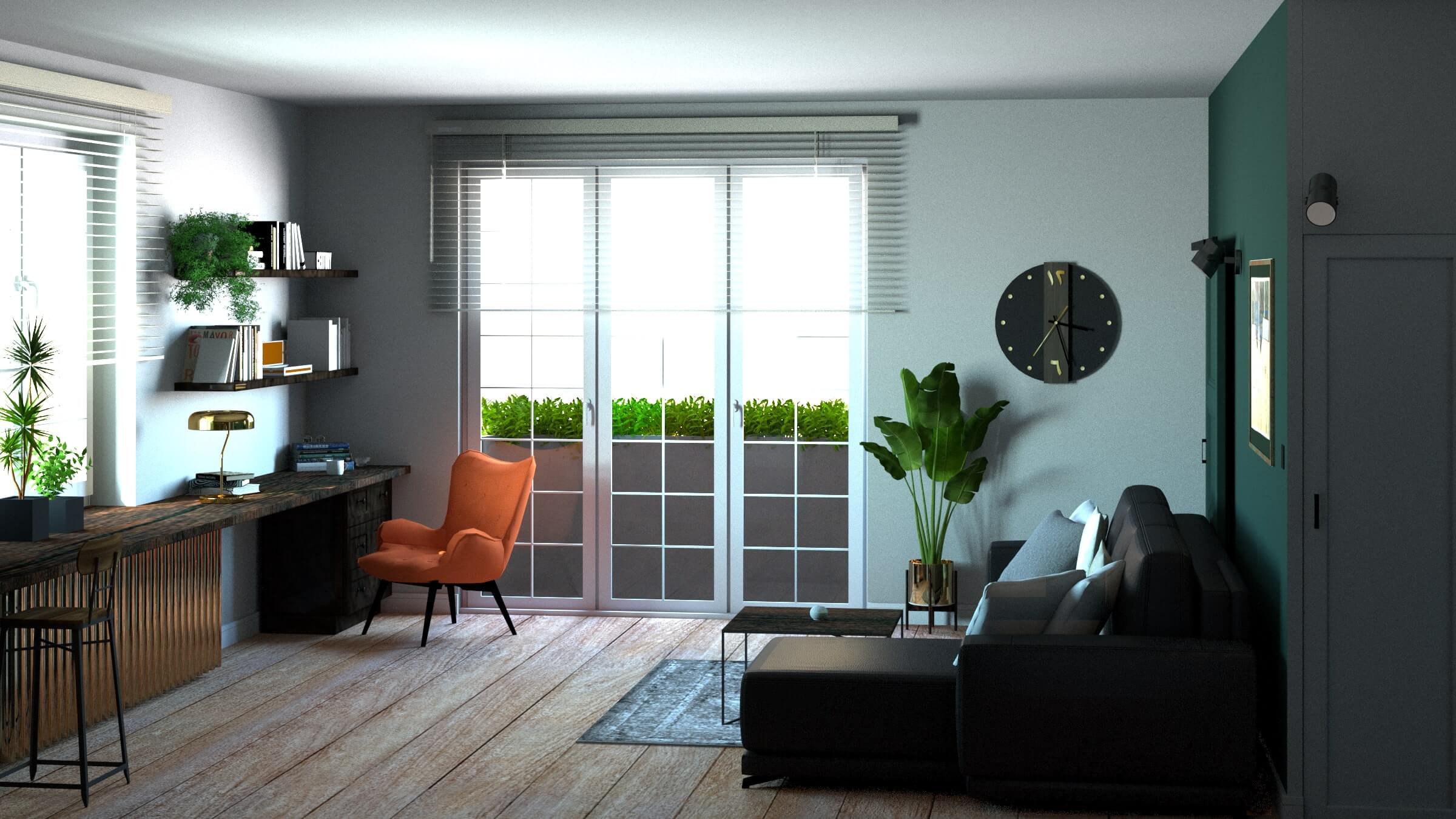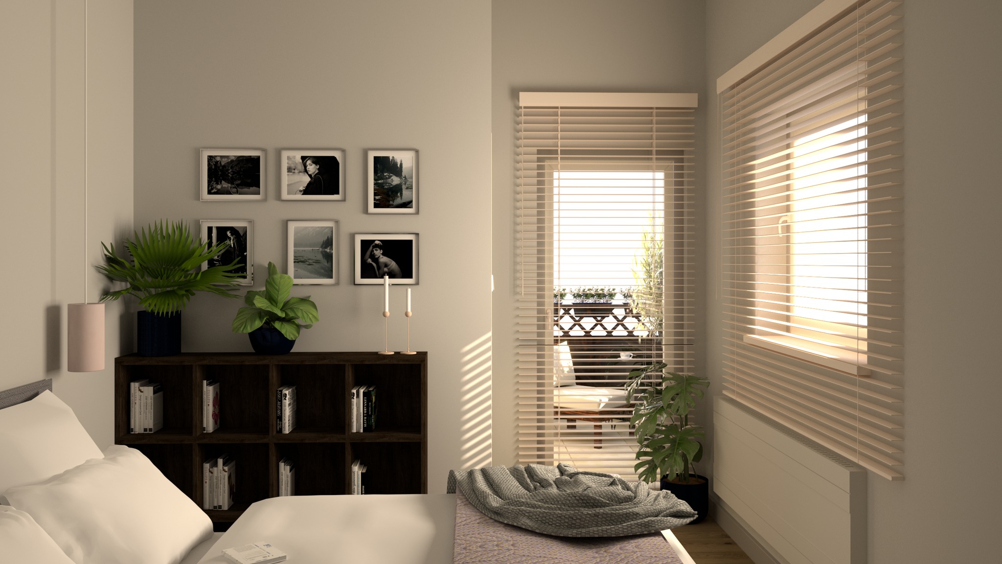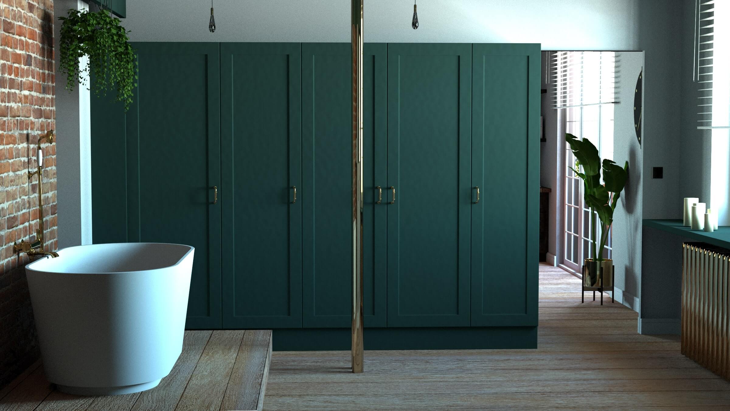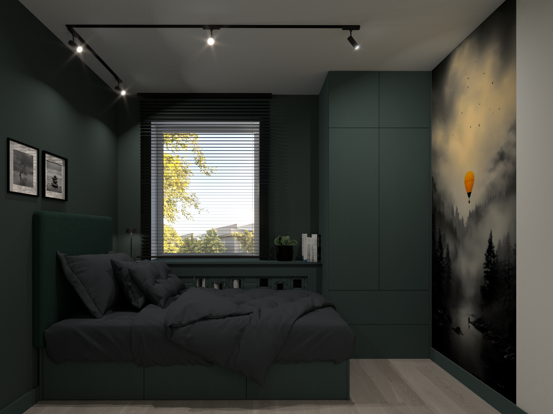 Mieszkanie w starym budownictwie 50 m2 dla mężczyzny, którego praca jest związana z częstymi wyjazdami. Mieszkanie o funkcji rekreacyjno-wypoczynkowej. Z czterech małych pomieszczeń zostały zaprojektowane dwa duże: salon z aneksem kuchennym oraz salon kąpielowy z garderobą, pralnią i pomieszczeniem gospodarczym. W powiększeniu łazienki przeszkadzały rury CO biegnące na jednej ze ścian działowych. Po wyburzeniu ścinki wyeksponowano je wymieniając na polerowane rury mosiężne. Było to też inspiracją do stworzenia pozostałej kolorystyki mieszkania – mosiądz pięknie komponuje się tutaj z zielenią oraz naturalnymi materiałami (drewnem i skórą), a także ze starą cegłą odsłoniętą na części murów . Pozostałe elementy są w klasycznej czerni, bieli i szarościach. „Kropeczką nad i” są białe drewniane żaluzje na oknach.