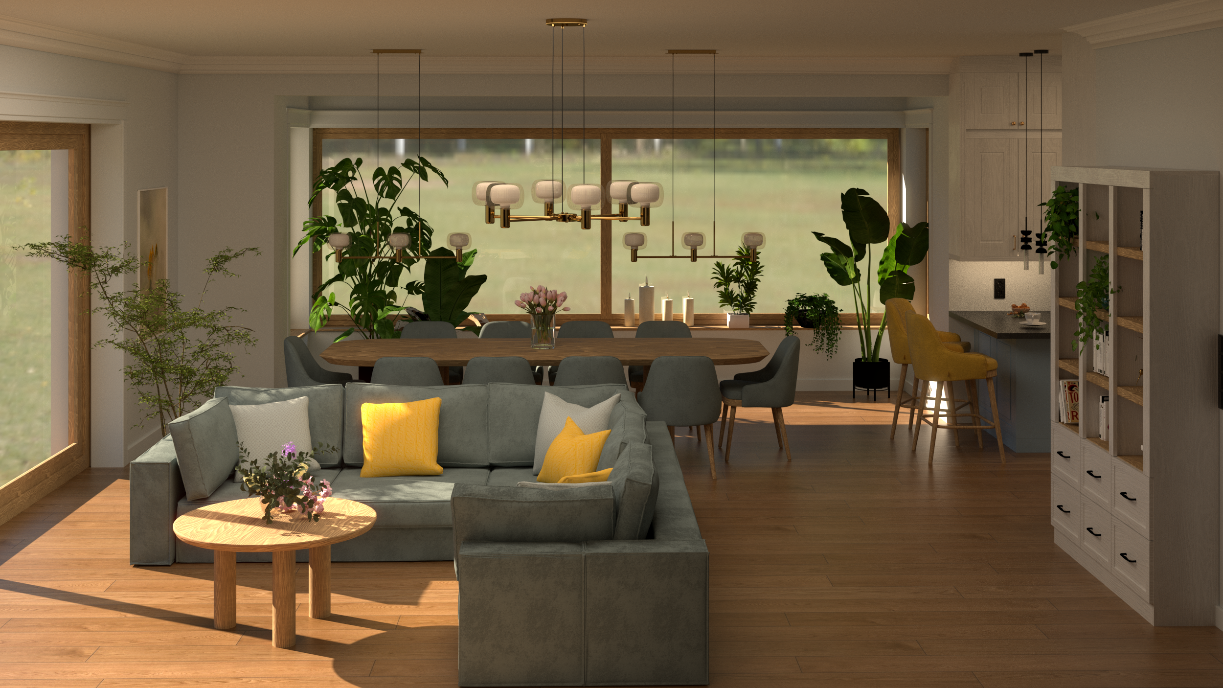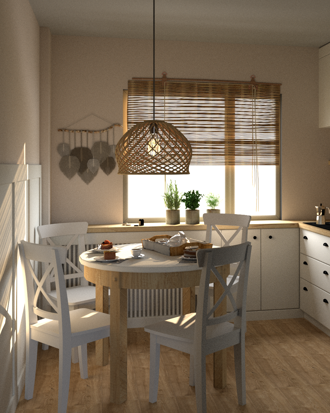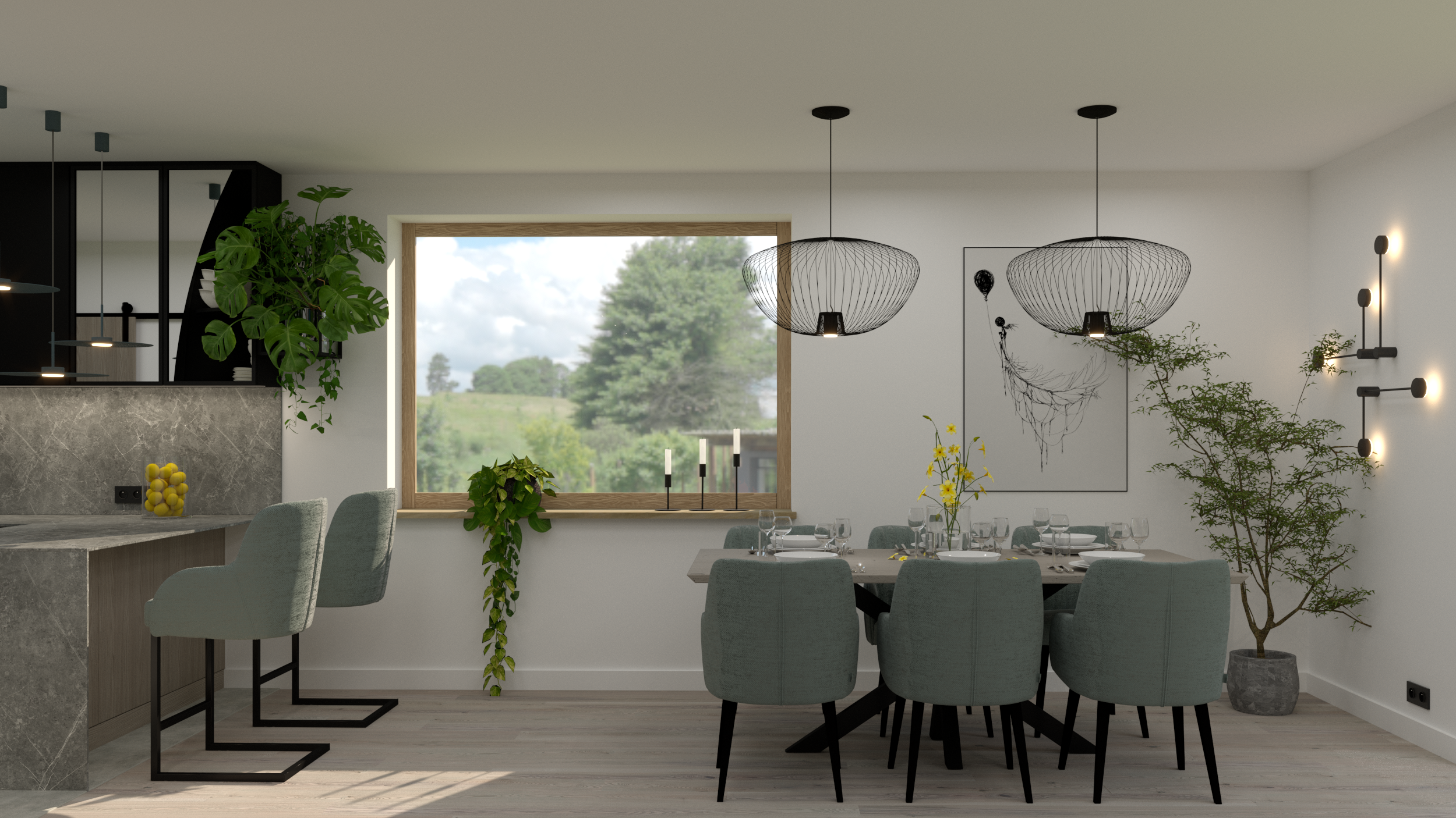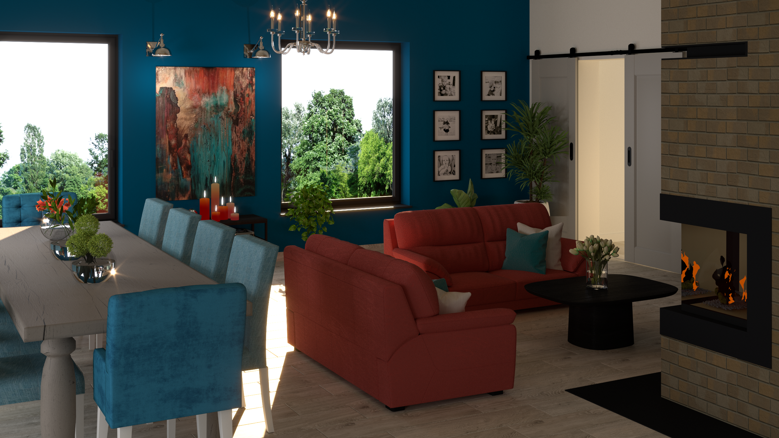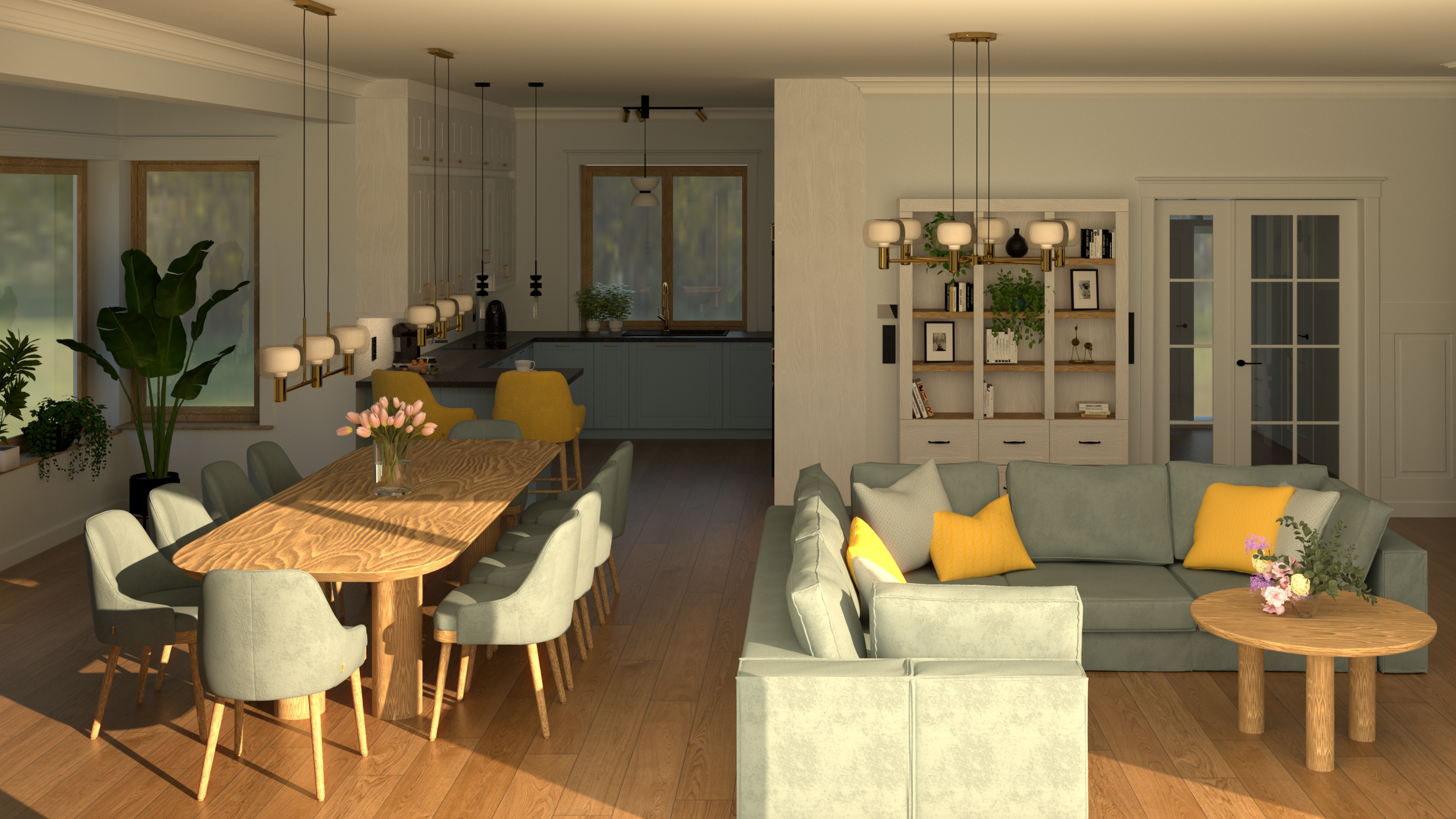 W salonie utworzono kącik jadalny i uporządkowano przestrzeń wokół kominka. Zagospodarowano miejsce pod schodami. Mały pokój na parterze przerobiono na klimatyczny gabinet z eleganckimi meblami i lampami oraz dodatkowym, ukrytym miejscem do spania. W kuchni stworzony został kącik wypoczynkowy z siedziskiem, podświetlana półka na wino oraz kącik jadalny z wygodnymi krzesłami. Łazienka zyskała nowe oblicze, głównie za sprawą zabudowy okna półkami na paprocie i trójwymiarowej tapety rozświetlającej pomieszczenie.