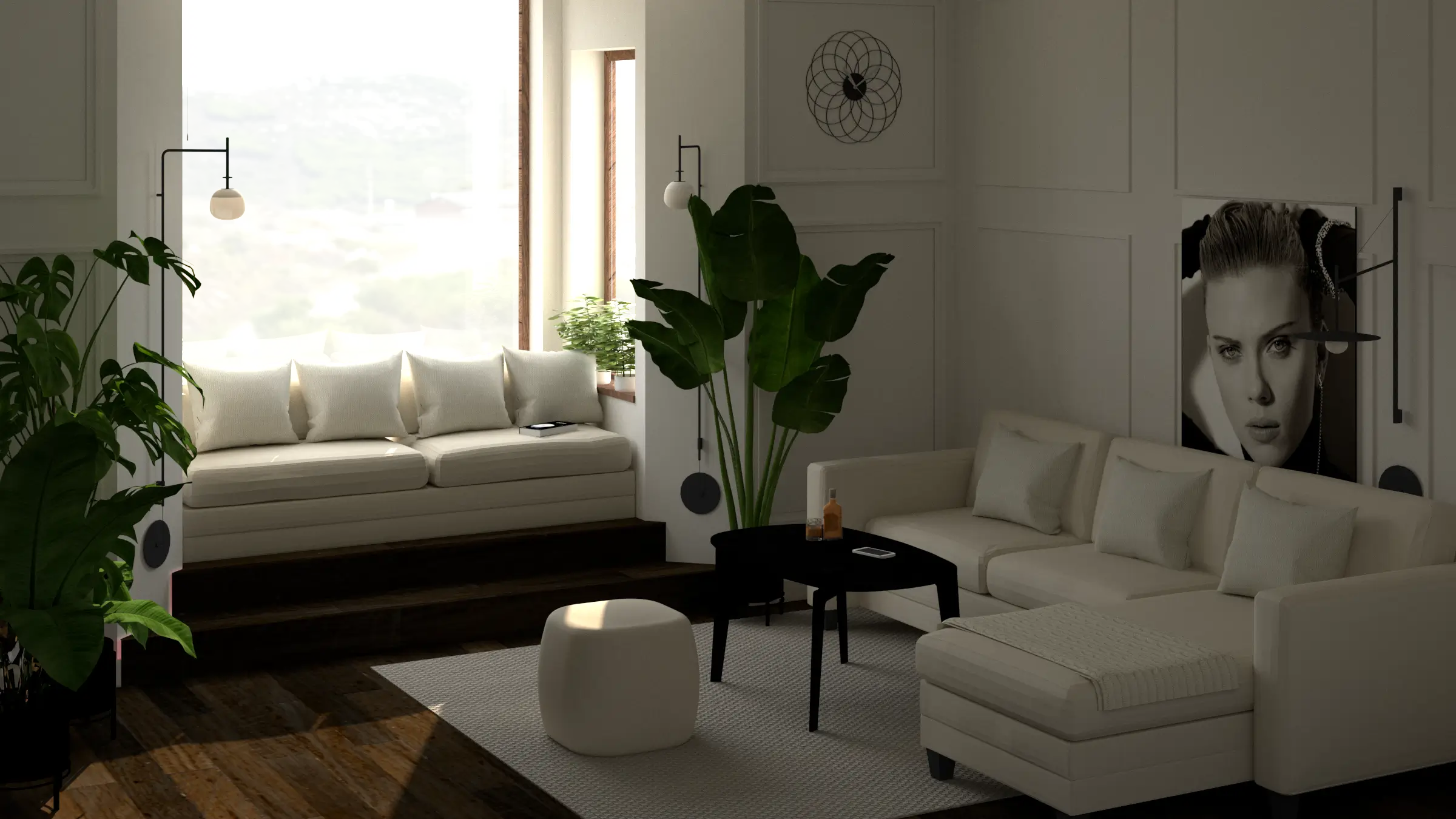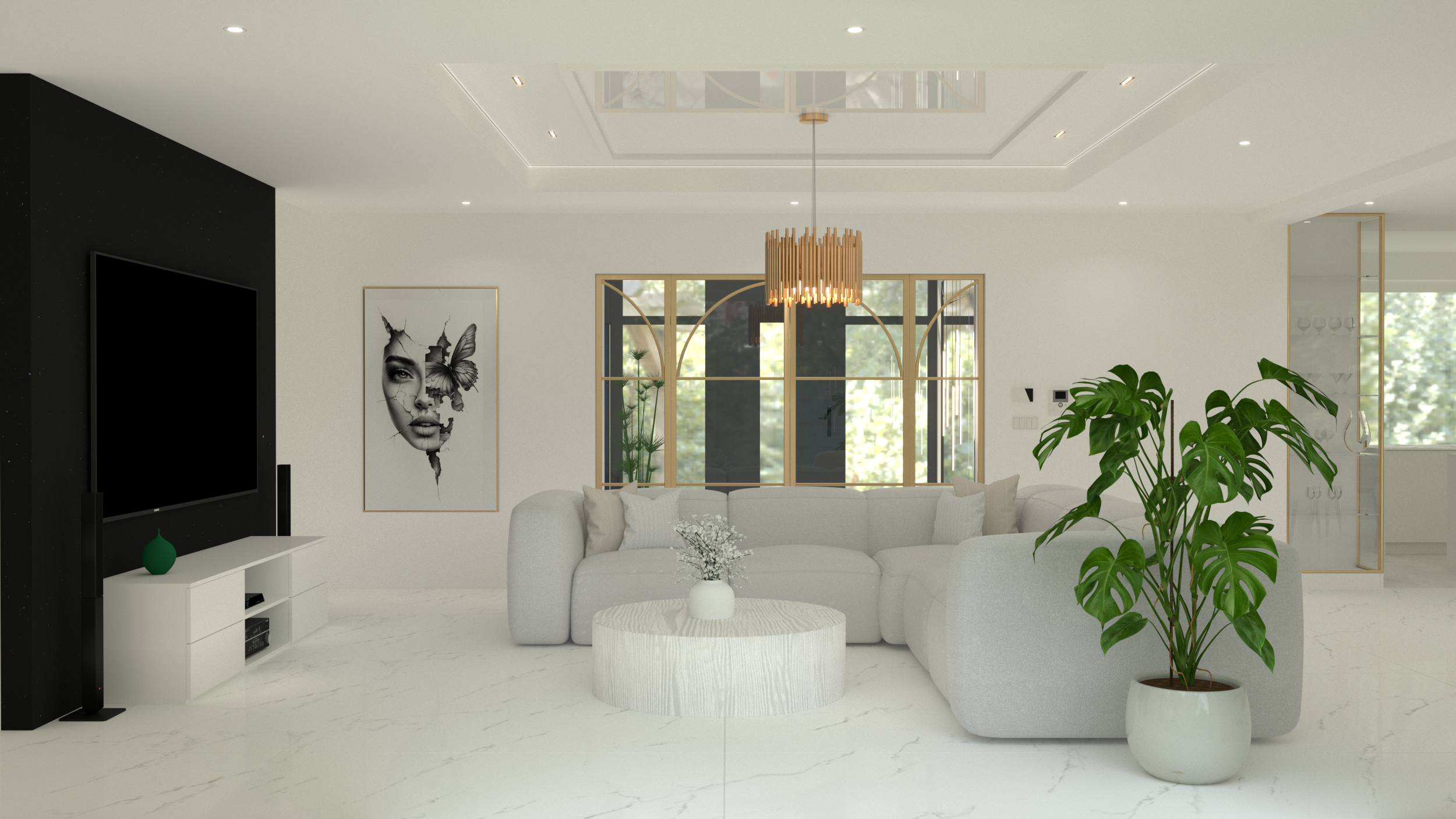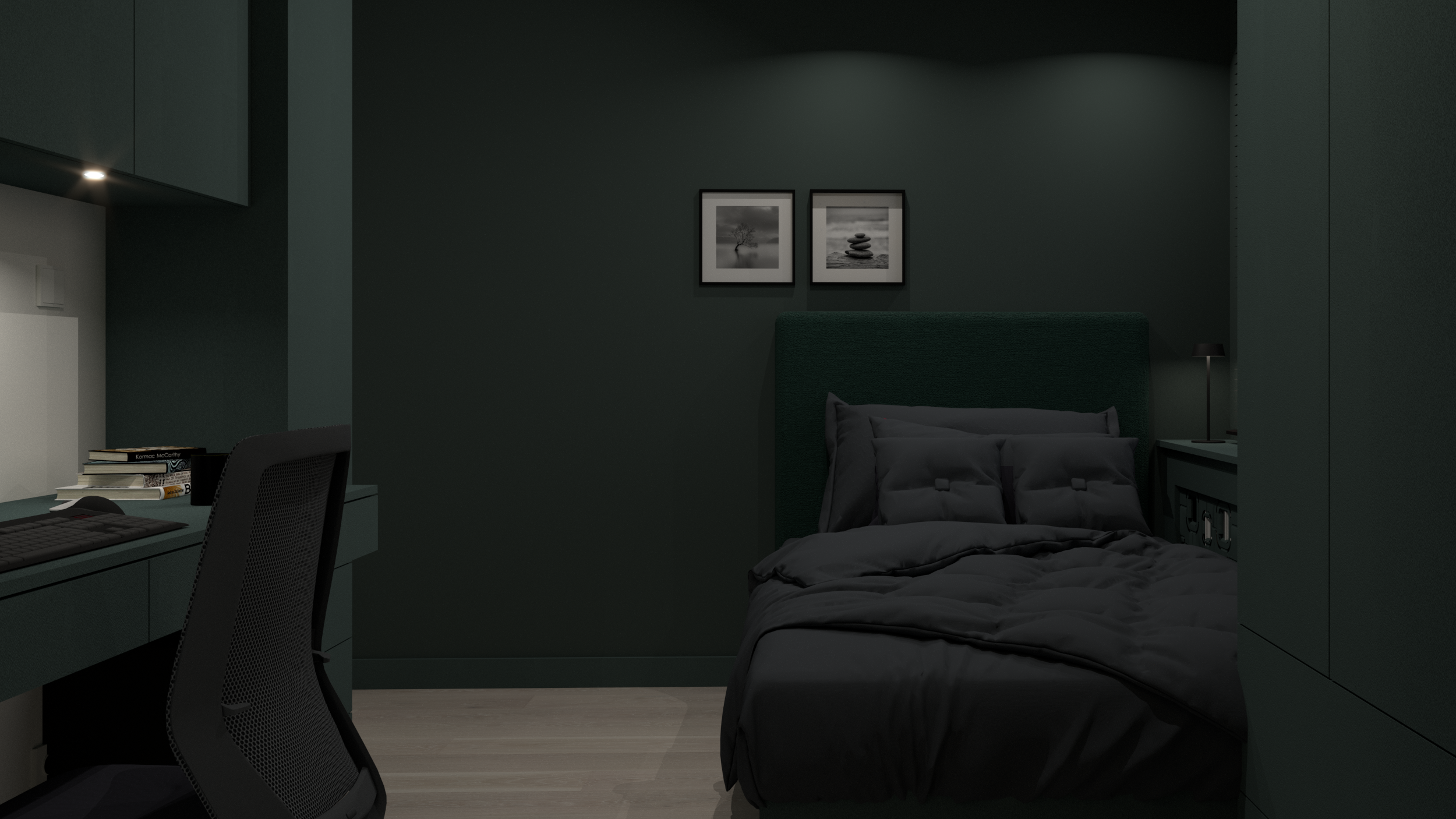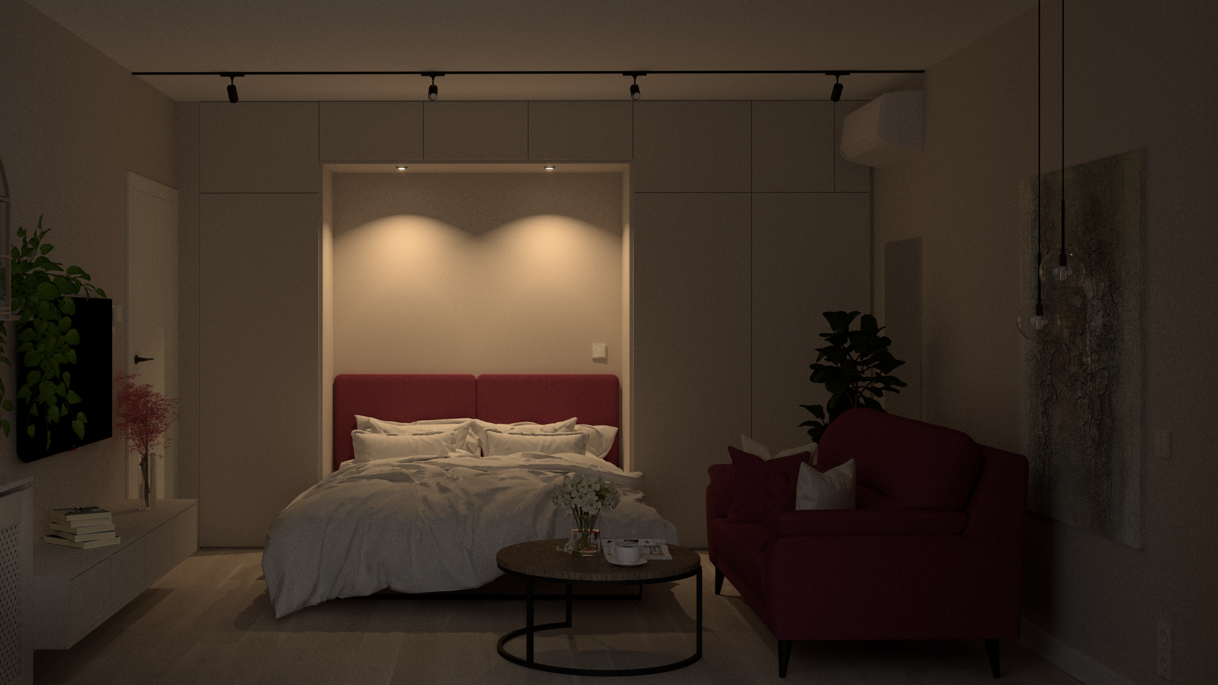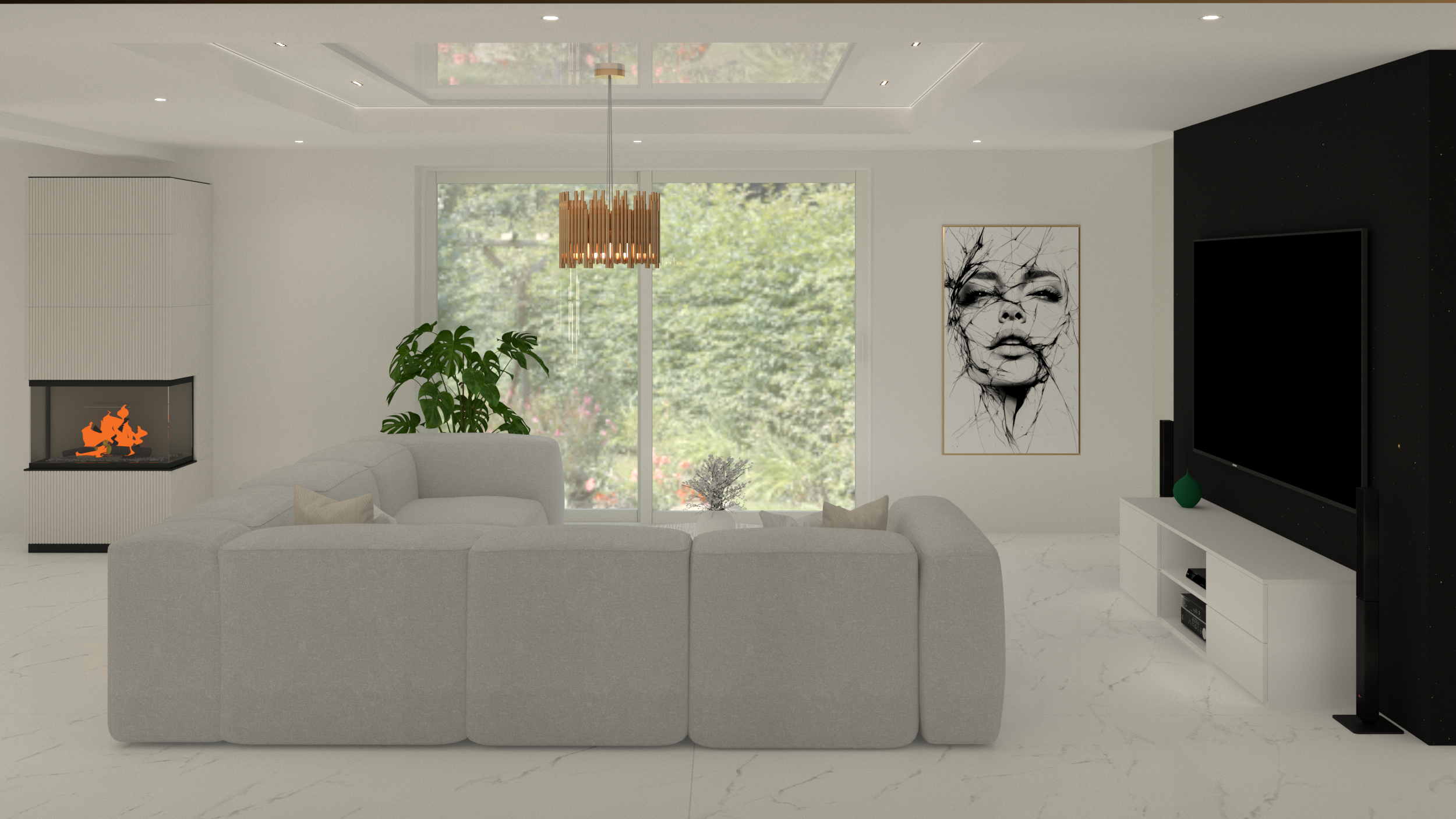 Projekt domu o powierzchni użytkowej 90 m2 dla małżeństwa, których pasją są książki, filmy i muzyka. Projektowane pomieszczenia zyskały na charakterze i nowoczesności. Stały się przytulne i eleganckie, a przede wszystkim funkcjonalne poprzez podział na strefy i utworzenie dodatkowych miejsc do przechowywania. Małe okna w połączeniu z otaczającą je zielenią nie dawały szans na światło dzienne, więc stworzono klimatyczne wnętrza „klubowe”, doświetlane sztucznym światłem. Zaprojektowano szereg regałów i półek, aby pomieścić domowe księgozbiory, płyty i filmy.
